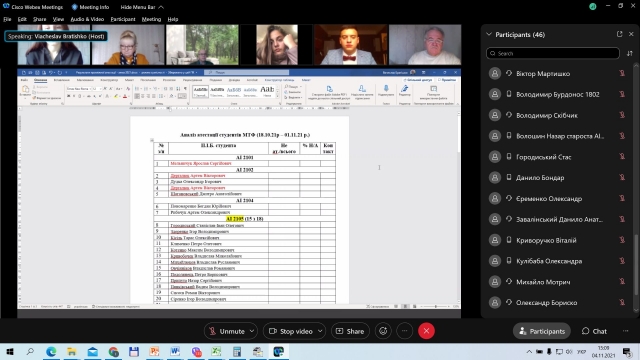4 листопада 2021 року, на механіко-технологічному факультеті пройшов розширений старостат, за участю наставників академічних груп факультету. Поточний семестр, впевнено виходить на фінішну пряму, а якими будуть його можливі показники – яскраво демонструють результати проміжної атестації студентів. Декан факультету, В’ячеслав Братішко, наголосив, що основною метою засідання, є прийняття колегіального рішення, стосовно активізації студентів, які із запізненням виконують умови семестрового навчання і мають борги за модулями дисциплін. Декан зауважив, що до початку екзаменаційної сесії, студентам необхідно покращити показники засвоєння матеріалу.