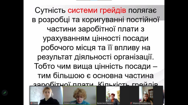 Окремо лектор зупинилася на особливості організації трудових відносин в умовах воєнного стану та на системах оплати праці, як традиційних, так і системі грейдів, сутність якої полягає в розробці, коригуванні постійної частини заробітної плати з урахуванням цінності посади; робочого місця та її впливу на результат діяльності підприємства. На завершення заходу, студенти активно задавали питання та відмітили, що була лекція була цікавою, пізнавальною, а презентація посилила зрозумілість, логічність і повноту викладення матеріалу лекції. Дякуємо колективу ВСП “Ірпінський фаховий коледж НУБіП України” за плідну співпрацю. Вікторія Байдала, завідувачка кафедри економіки