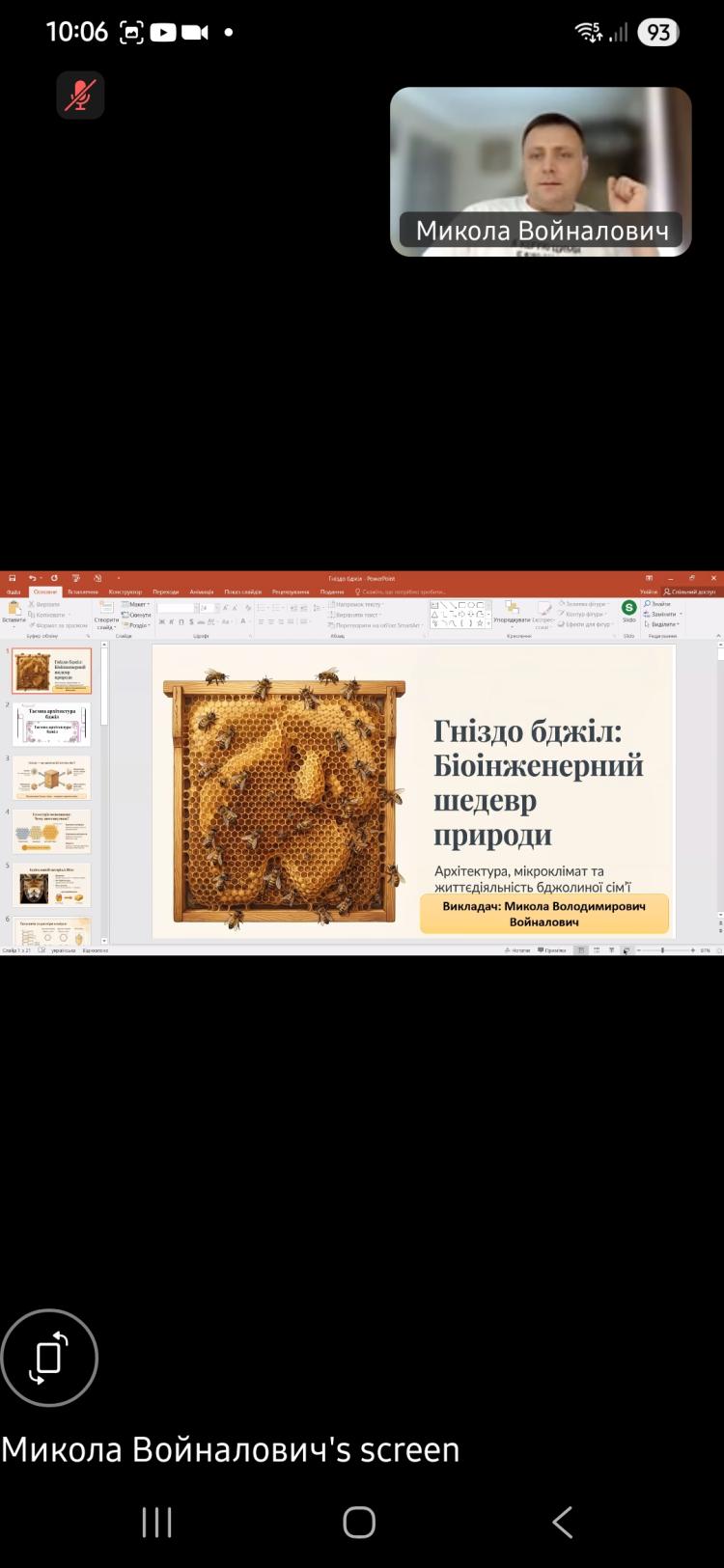 Освітній проєкт нашої кафедри продовжує активно розвиватися, залучаючи до навчання нову генерацію дослідників. Нещодавно в межах програми відбулося наступне заняття, присвячене внутрішньому особливості будови гнізда бджіл. Спікером виступив досвідчений фахівець, доцент Микола Володимирович Войналович, який запропонував учням нестандартний погляд на звичні біологічні процеси.
