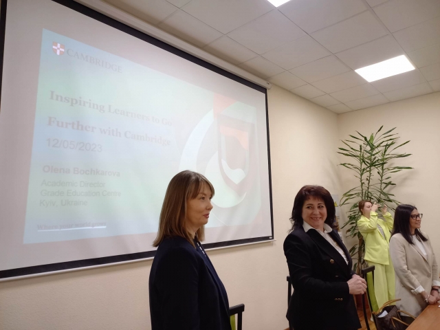 12 травня 2023 року студенти та аспіранти кафедри міжнародних відносин і суспільних наук відвідали інформаційний семінар Inspiring Learners to Go Further with Cambridge. Академічний директор Grade Education Centre Олена Бочкарова розповіла про можливості та умови для українських студентів, аспірантів та викладачів підвищити свій рівень англійської мови та отримати сертифікат від університету Кембріджа.