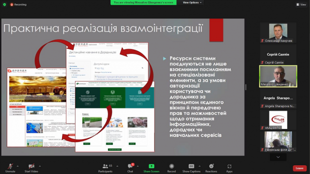 • технічні особливості використання інформаційно-навчальної платформи для фінансових/кредитних дорадників (доповідач Саяпін Сергій Петрович, завідувач навчальної лабораторії розробки та впровадження інформаційних систем кафедри інформаційних систем і технологій НУБіП України).