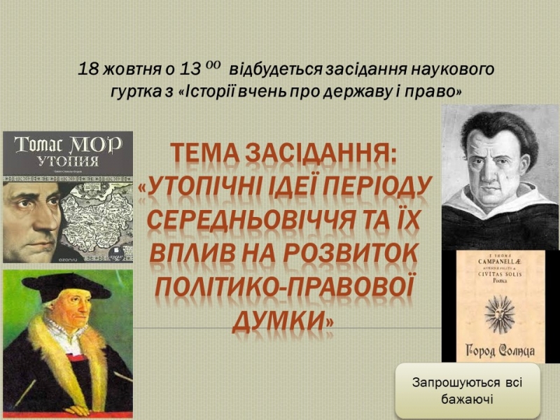 Середньовічні утопічні ідеї на порядку денному засідання студентського наукового гуртка