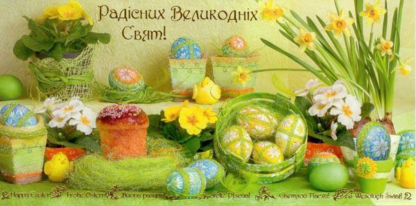 Великдень приходить до нас, аби поєднати близьких людей, дати їм нагоду ще раз пробачити і самим просити пробачення. Тієї миті, коли вдарять над нашою великою Україною Великодні дзвони, нехай оселиться у Вашому житті щастя! Нехай воскресне у Ваших душах усе найкраще на землі - непохитна віра, щира відданість і вічна любов. Душа нехай світлішою стає, серце пламеніє любов’ю, а помисли - щирими та добрими