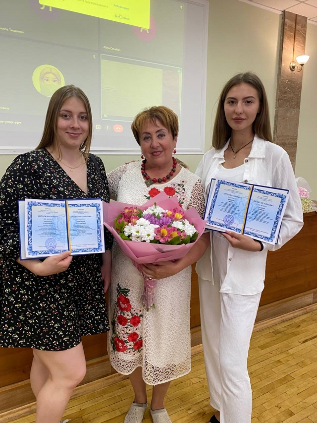 Словами привітання випускників відкрили урочисту частину проректор з наукової роботи та інноваційної діяльності Вадим Кондратюк та декан факультету Лариса Баль-Прилипко, вони побажали випускникам успіхів, професійного розвитку та здоров’я у цей важкий час для всієї країни та світу.