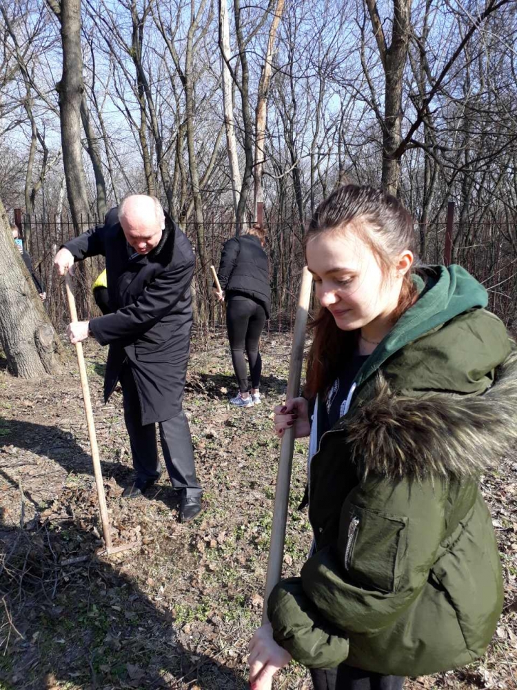 Напрочуд приємно почуватися в обіймах весни, поділяючи її настрій! Вона кличе за собою, вабить і вміє це робити так, що чинити опір її старанням немає абсолютно ніякого бажання. Настає таке відчуття, що в нас ще з самого створення світу закладено прагнення з приходом весни творити, змінювати світ, експериментувати. Втім, недарма кажуть: щоб побачити веселку, треба пережити дощ. Тож, хоча зима і залишилася вже далеко позаду, але охайний і по-справжньому весняний вигляд території НУБіПУ так просто не дається: докладати зусиль треба до всього. Відтак, декан гуманітарно-педагогічного факультету – доктор філологічних наук, професор Василь Дмитрович Шинкарук – зініціював прибирання територій, які прилягають до корпусів університету.