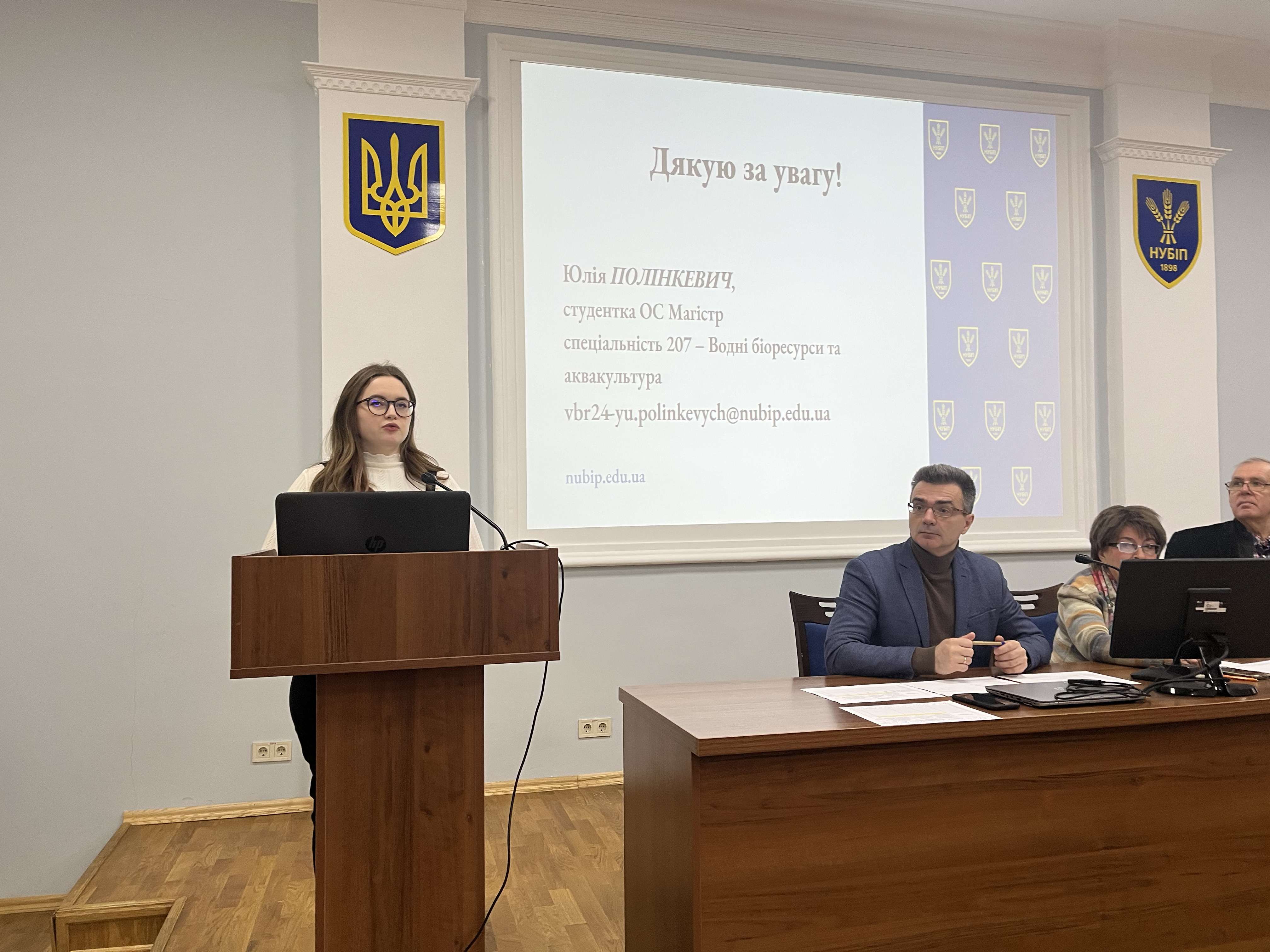 III місце — Юлія ПОЛІНКЕВИЧ, тема: «Технологічні основи відтворення та вирощування європейського харіуса (Thymallus thymallus) в умовах ДУ РФЗ «Лопушно»