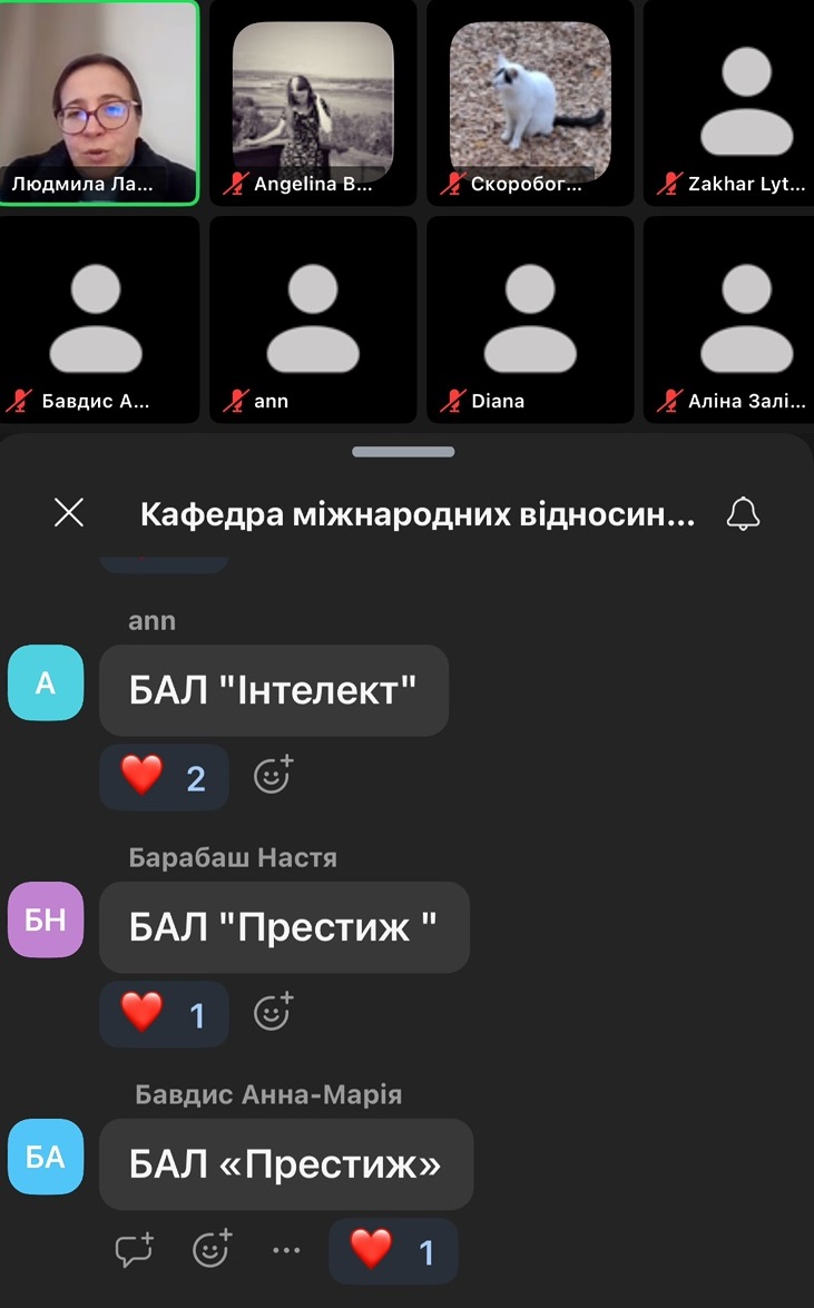 Для активізації уваги слухачів було проведено інтерактивний квест, переможці якого отримали заохочувальні призи. Відеозапис заходу розміщено на YouTube-каналі кафедри. https://www.youtube.com/@intrelations_nubip