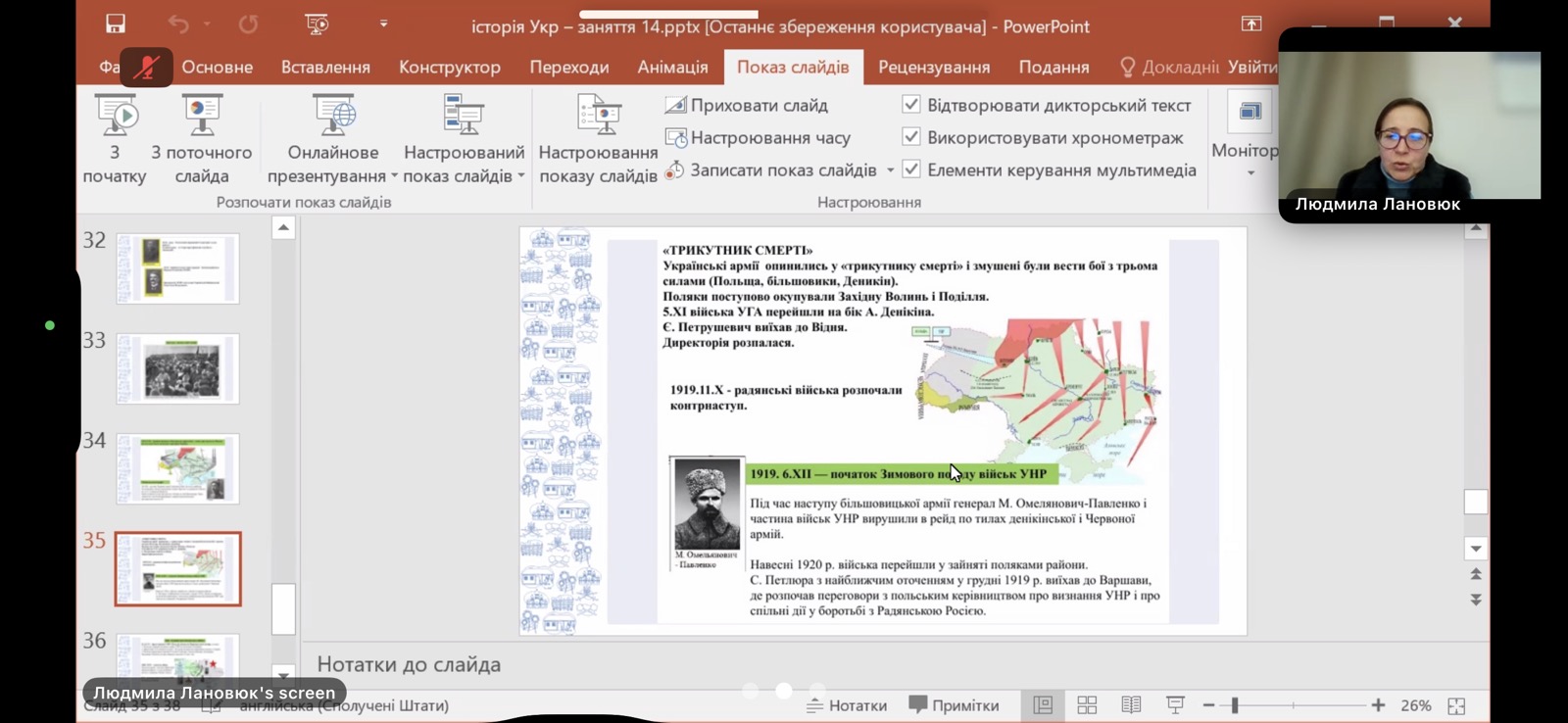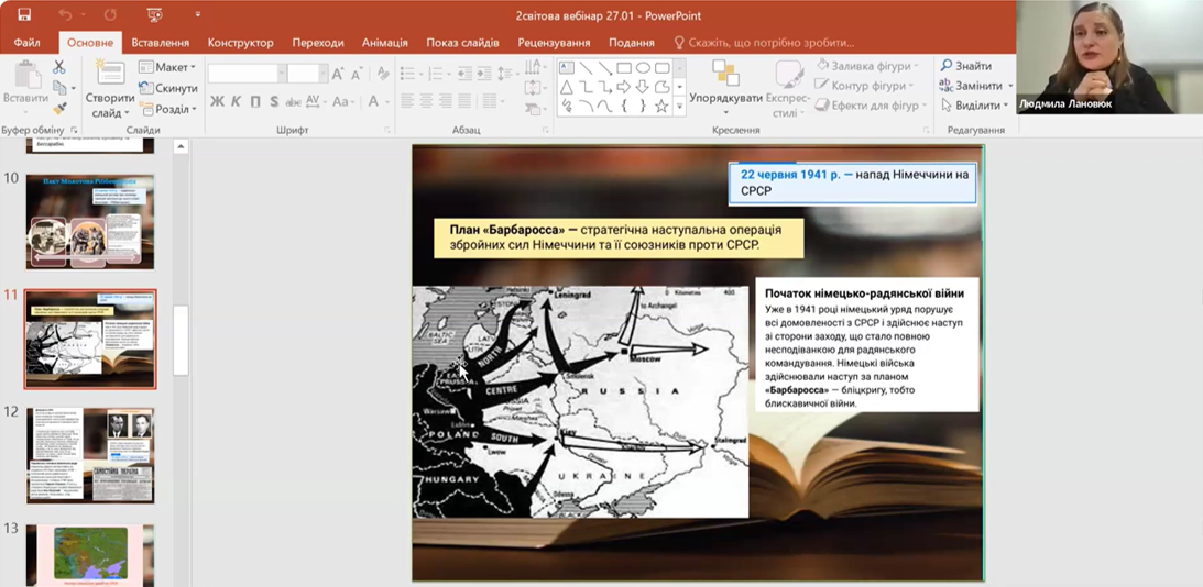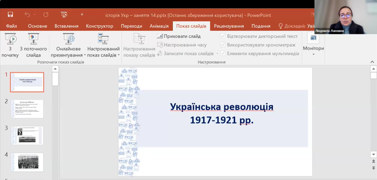 Модератори заходу висвітили на платформі Zoom важливі теми з НМТ. Так, Людмила ЛАНОВЮК розкрила основні аспекти історії України у період національної боротьби 1917-1921 рр., а Людмила РАДЧЕНКО в контексті тестових завдань НМТ розповіла про події Другої світової війни.