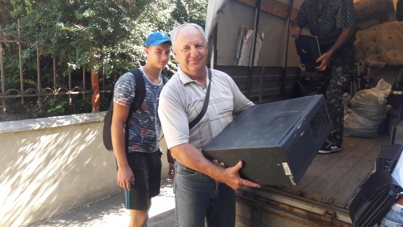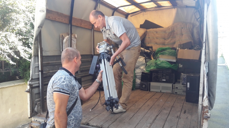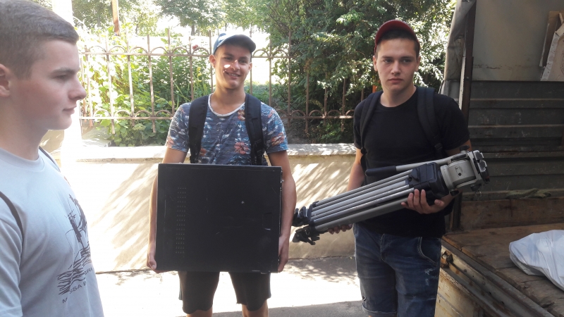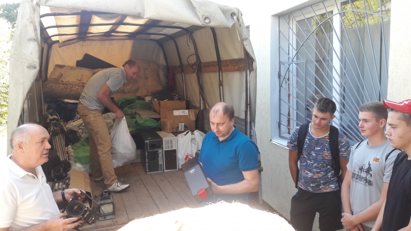 Розвантажити обладнання з радістю допомогли студенти спеціальності "Журналістика", а також науково-педагогічні працівники факультету - завідувач кафедри міжнародних відносин і суспільних наук, професор Сергій Білан, професор цієї ж кафедри Володимир Калуга, заступник голови профспілкової організації НУБіП України Руслан Любар, старший викладач кафедри романо-германських мов і перекладу Олексій Сиротін та представники адміністрації факультету на чолі з деканом, професором Василем Шинкаруком.