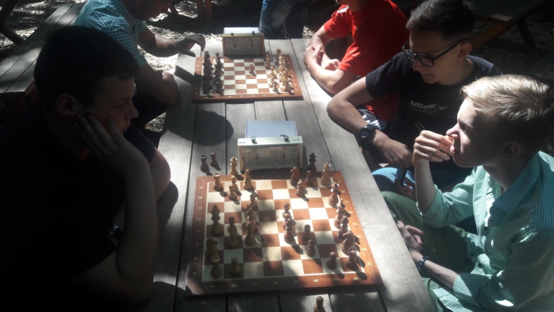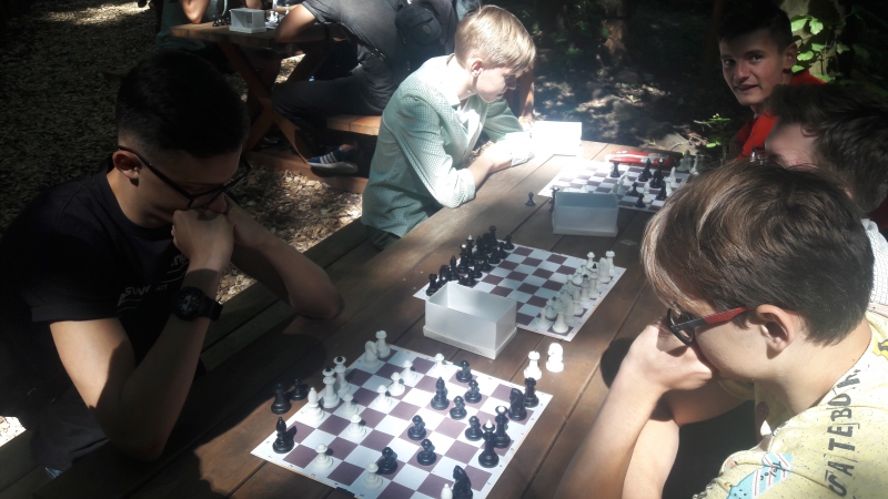 А в цей час першокурсники змагалися у шахових баталіях на території аудиторії під відкритим небом, що розташована у мальовничому куточку Ботанічного саду НУБіП України.