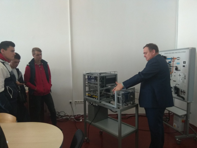 Спільно з завідувачем кафедри тракторів, автомобілів та біоенергоресурсів – В’ячеславом Чубою гості провели регулювання сучасної паливної системи автомобіля з дизельним двигуном внутрішнього згорання на новітньому навчально-демонстраційному стенді «Common Rail».