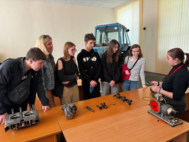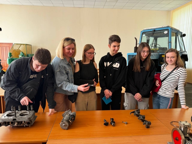 Остання локація була присвячена двигунам внутрішнього згорання, на якій студентка Ольга КОВТУН продемонструвала роботу макету двигуна Стірлінга. Також учні випускних класів ознайомились зі складовими частинами та механізмами тракторів та автомобілів закордонного виробництва.