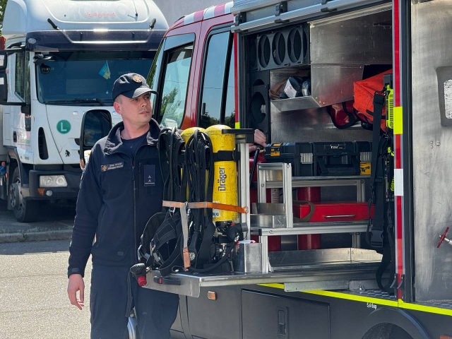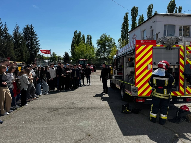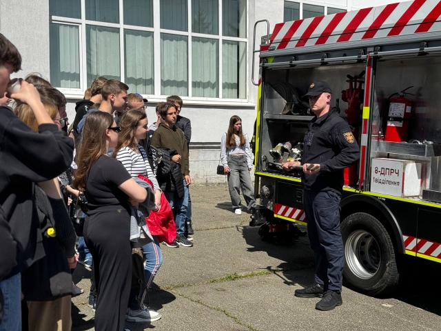 Після проходження всіх локацій на учнів чекали представники ДСНС Голосіївського району. В рамках спеціальності 274 «Автомобільний транспорт» представниками ДСНС було представлено спецтранспорт у вигляді пожежного автомобіля, який є надзвичайно важливою складовою рятувального транспорту. Також учнів ознайомили з основними правилами пожежної безпеки, це особливо важливо під час воєнних дій. Також представники ДСНС нагадали кожному, як потрібно поводитись з вибухонебезпечними пристроями та що заборонено робити. Учні мали змогу не тільки послухати теорію, але і на практиці дізнатися про спорядження та оснащення спеціальними пристроями для боротьби з пожежами, яке розміщене в пожежному автомобілі, види вогнегасників та як подається вода на гідрант.