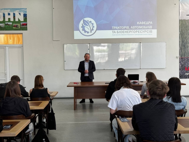Зустріч з абітурієнтами розпочав завідувач кафедри тракторів і автомобілів Євген КАЛІНІН, який привітав та ознайомив майбутніх студентів із життям Національного університету біоенергоресурсів та природокористування України, про спеціальності та освітні програми, які реалізуються на кафедрі, поділився численними успіхами науковців і студентів та детально описав переваги здобуття вищої освіти за спеціальністю 274 «Автомобільний транспорт».