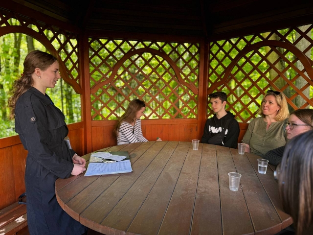 На четвертій локації учні мали змогу відвідати ботанічний сад НУБіП України. Там вони ознайомились з сучасним та минулим екологічного автомобілебудування разом з асистентом кафедри Дар’єю ЛЕМІШКО, яка підготувала дуже цікаві завдання зі світових тенденцій екологізації сучасних автомобілів.