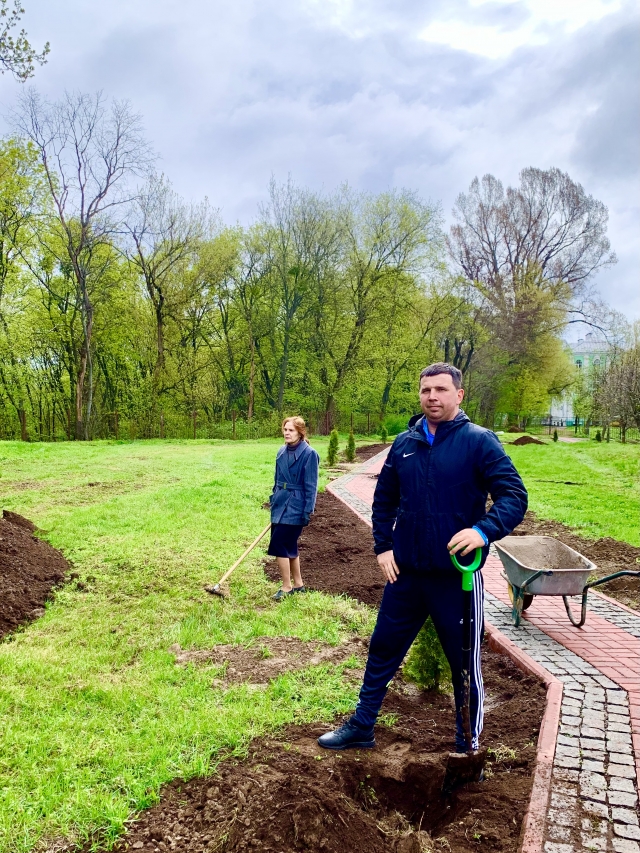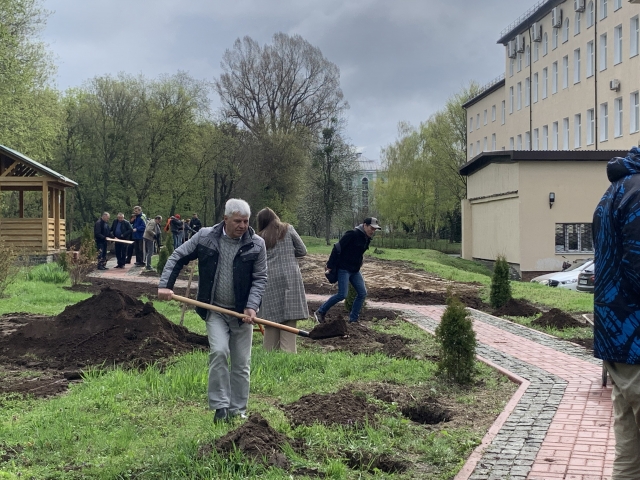 Дружною родиною наш колектив зібрався на подвір’ї третього корпусу, щоб рідний університет, не зважаючи ні на що, сяяв зіркою в Голосієво. Всіх колег привітав Ректор Станіслав НІКОЛАЄНКО, благословив на добрі звершення. Після чого понад два десятки працівників факультету на чолі з деканом Інною САВИЦЬКОЮ та заступником декана Ігорем БУЦИКОМ натхненно взялися до роботи. Прибирали територію біля третього корпусу, озеленювали сквер, саджали дерева, розчищали квітники і чистили доріжки.