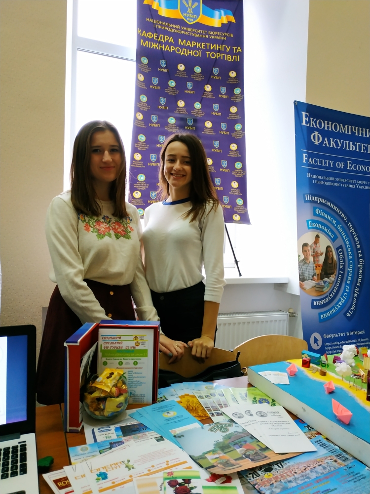 Зацікавлені випускники мали змогу поспілкувалися з головою студентської організації Анною Кравчук, яка в деталях розповіла про переваги навчання в НУБіП і саме на факультеті аграрного менеджменту, та в деталях розповіла про опанування професії маркетолога в нашій Альма Матер.