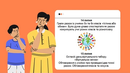 Оксана Білокінь, яка проходила практику за місцем проживання у Піщаницькій гімназії Овруцької міської ради Житомирської області, поділилась своїми враженнями та отриманим досвідом, тому що мала можливість проходити практику очно та попрацювати з дітьми: «Проводила заняття з елементами тренінгу для учнів молодшого шкільного віку «Ми всі зростаємо разом» та практикум «Дай п’ять!» для дітей та підлітків Світлани Ройз. Разом із дітьми проходили тест «Кінетичний малюнок сім'ї» (ВРХ) Р.Бернса і С.Кауфмана. Він допомагає виявити взаємини в сім'ї, може викликати тривогу у дитини, показує, як вона сприймає інших членів сім'ї та своє місце серед них. На наступному тижні нашої практики продовжила працювати в ролі соціального працівника та провела для діток виховну годину «Основні правила поведінки на воді, поблизу водойм під час літнього відпочинку» та тест «Який я у спілкуванні?», який допомагає визначити рівень комунікабельності, товариськості дитини».