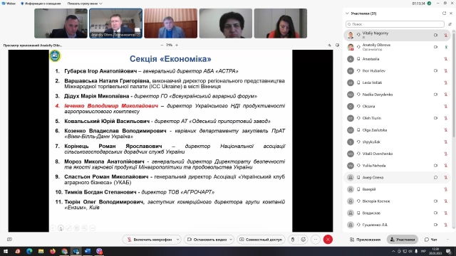 На засіданні було обрано голову ради - Сластьона Романа Миколайовича - генерального директора Асоціації «Український клуб аграрного бізнеса» (УКАБ) та його заступником - к.с.г.н. Івченка Володимира Миколайовича – директора Українського науково-дослідного інституту продуктивності агропромислового комплексу. Також були затверджені склади робочих Секцій та їх керівників.