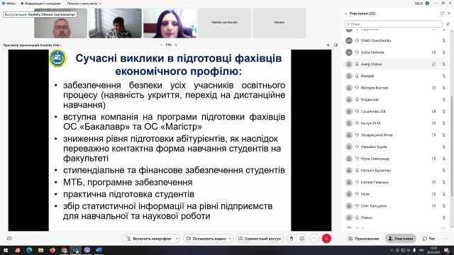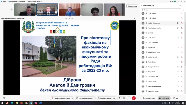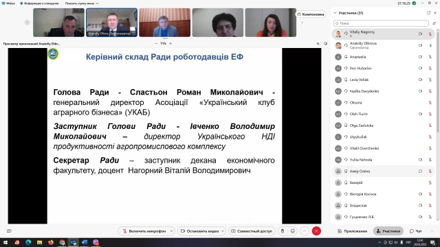 28 березня 2023 року на економічному факультеті відбулося перше засідання оновленого складу ради роботодавців економічного факультету. Декан Анатолій Діброва представив широкому загалу новий склад ради роботодавців. Анатолій Дмитрович представив особливості навчального процесу на економіному факультеті, ознайомив з матеріально-технічною базою факультету, програмами підготовки фахівців тощо.