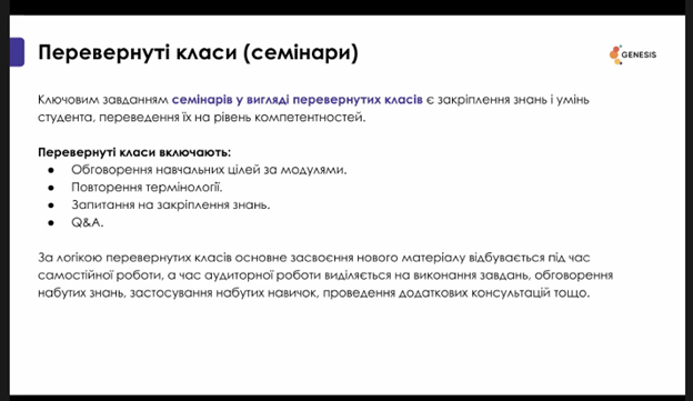 Cпікери третього дня проекту для викладачів "Uni-Biz Bridge" від UGEN розпочали з теми: Інтерактивні формати онлайн занять. Спікер: Андрій Сідляренко, Academic Innovations Lead в Genesisрозповів розповів про чотири підходи до проведення занять в інтерактивному форматі, необхідні інструменти та платформи для їх реалізації.