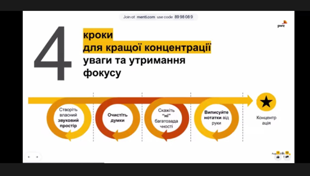 провела спікер: Віра Кривокінь, спеціалістка із розвитку бренду роботодавця, PwC Ukraine