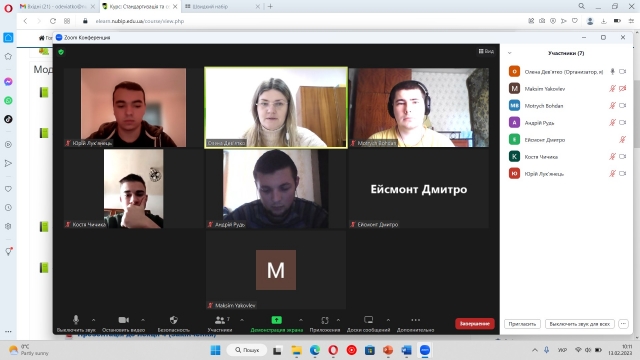 13 лютого 2023 року проведено в онлайн режимі практичні заняття з академічними групами АІ-2104 і АІ-2105 бакалавратури механіко-технологічного факультету з навчальної дисципліни "Стандартизація та сетрифікація техніки і обладнання".