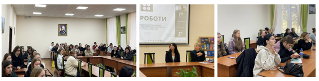 Голова проспілкової організації ГПФ – Валентина РУДЕНКО наголосила, що профорги мають надзвичайно важливу роль у житті академічних груп – вони залишаються голосом студентів у питаннях покращення умов навчання, соціальної підтримки та створення комфортної атмосфери для кожного. Разом з профоргами академічних груп було обговорено питання додаткових балів, які вони можуть отримати в кінці навчального семестру. Завершуючи свою доповідь наголосила на співпраці з Сенатом студентської організації ГПФ та закликала профоргів до активної участі в заходах.