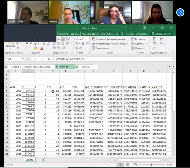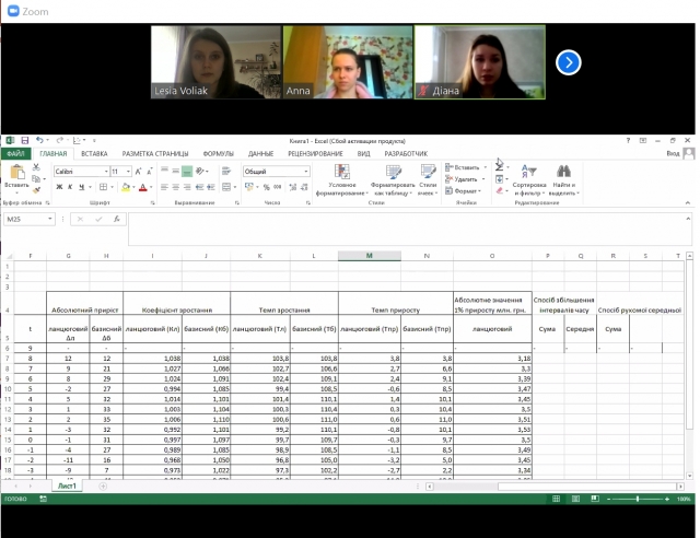 Старший викладач кафедри Леся Воляк разом із студентами економічного факультету спеціальності «Фінанси, банківська справа та страхування» 2 року навчання провели практичну роботу з дисципліни «Statistics» на тему «Analysis of Trends and Fluctuations», а також віртуально зустрілись на лекції відповідно до розкладу використовуючи додаток Zoom Video Communications.
