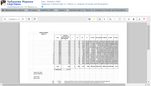 Практична робота «Analysis of trends and fluctuations» дала змогу студентам використовуючи дані української служби статистики України розглянути основні тенденції у виробництві сільськогосподарської продукції, стан природокористування, зміни заробітної плати тощо.