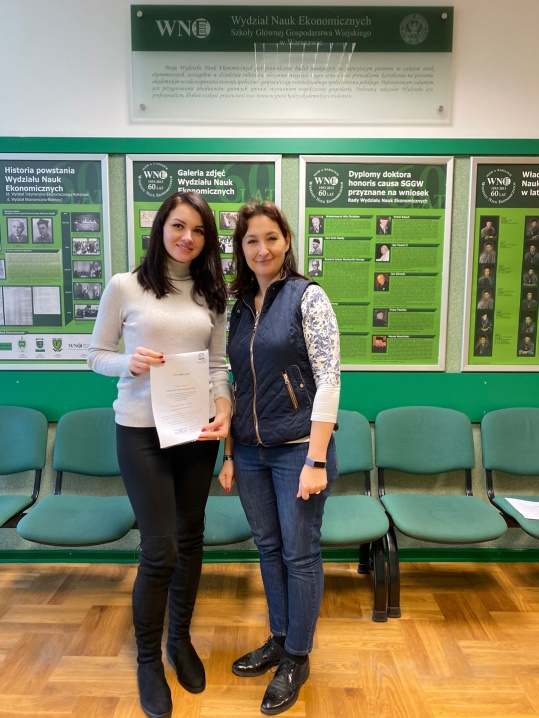 З 1 по 30 листопада доцент кафедри маркетингу та міжнародної торгівлі факультету аграрного менеджменту Вікторія Вікторівна Ніколаєвська проходила наукове стажування у Варшавському університеті наук про життя (Warsaw University of Life Sciences – SGGW, Польща) в рамках проекту Польського національного комітету у справах ЮНЕСКО. Стажування проходило на факультеті економічних наук під керівництвом доктора кафедри Європейської політики та маркетингу Анни Ясілевич та координатора програми ЮНЕСКО, професора Агати Малак-Равліковської.
