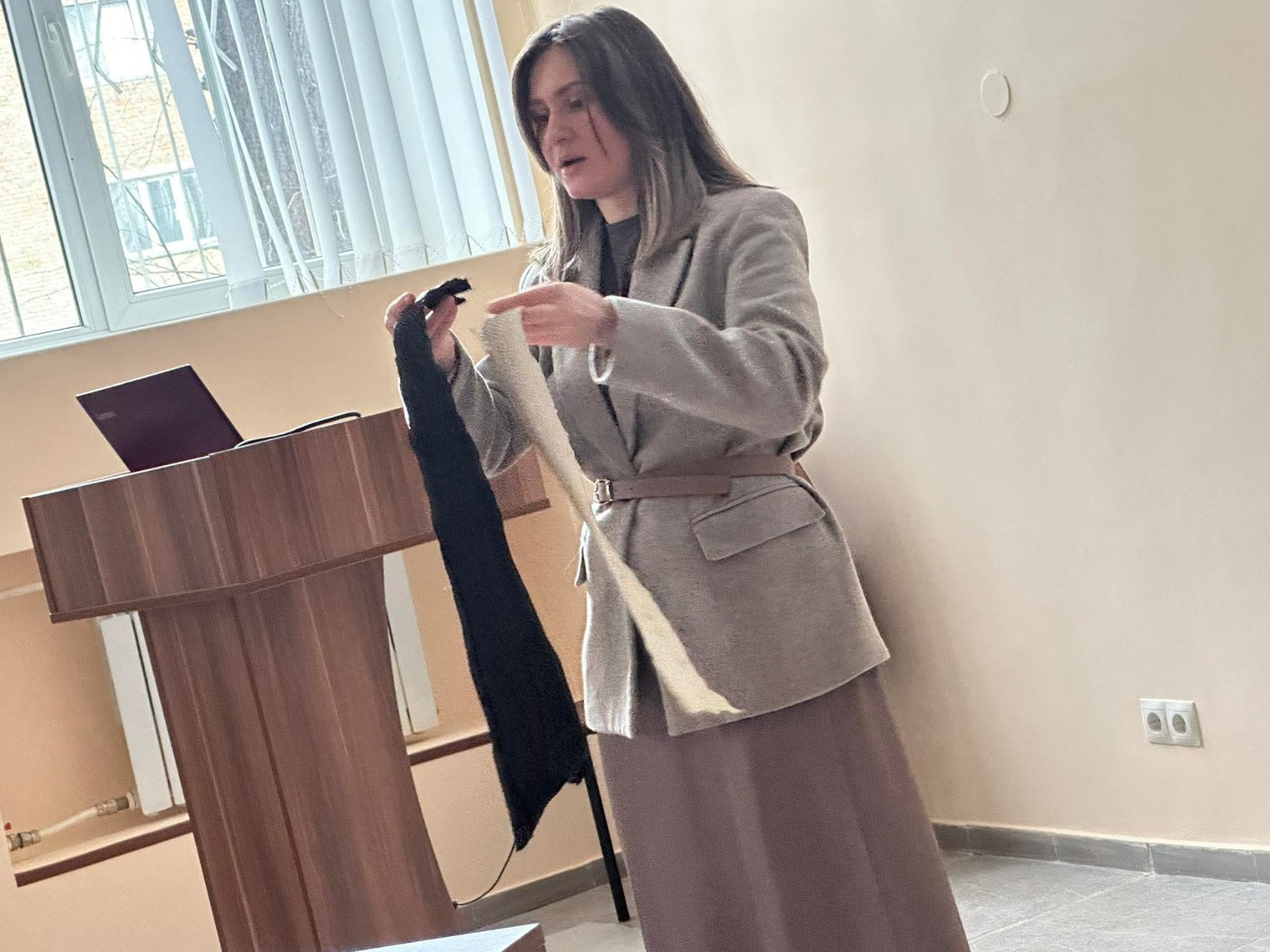 Окремий інтерес у присутніх викликала можливість ознайомитися з виробами зі шкіри риби, які Юлія БУГЛАК представила під час зустрічі. Здобувачі вищої освіти із захопленням розглядали аксесуари, оцінювали якість матеріалу, його текстуру, навіть запах та естетичну привабливість. Багато хто відзначив, що вироби приємно вражають своєю міцністю, оригінальністю та не поступаються традиційним шкіряним аналогам. Такий практичний досвід дозволив молоді по-новому поглянути на можливості використання водних біоресурсів та ще більше зацікавив інноваційними напрямами розвитку галузі.