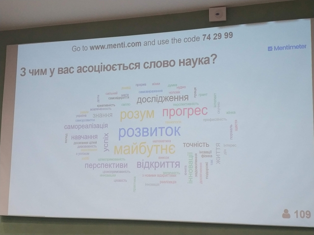 За допомогою інтерактивного опитування кожен з присутніх поділився з чим асоціюється слово наука.