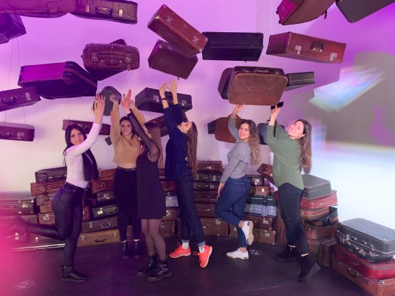 Зайшовши до музею, нас зустріла чудова експозиція у вигляді висячих «ексклюзивних» валіз. Звісно, ми не змогли пройти повз, не зробивши фото.