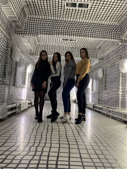 Наступним, що ми помітили, були «чорні квадрати». Зазирнувши в середину, кожен може побачити пейзажі різних міст України. Потім нас вирішили перевірити на знання. Ми проходили квест всліпу. За чорною ширмою були заховані найвідоміші архітектурні пам’ятки України. На дотик ми повинні були розпізнати ці об’єкти та назвати їх.