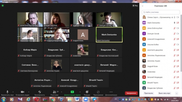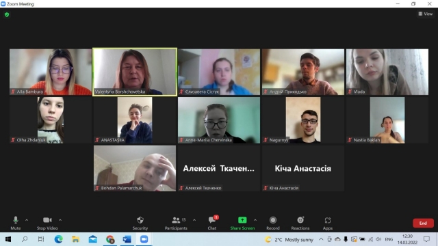 Студенти-філологи, спеціальності перша мова – Англійська – протягом 14 і 15 березня вийшли на навчання за розкладом. Професорсько-викладацький склад кафедри почав заняття з психологічної десятихвилинки з метою підтримки студентства. Якщо 14.03.22 на навчання вийшло від 30 до 45 % студентів-філологів, то 15.03.22 їхня кількість змінилася – з 50 до 63%. Особливо активно долучилися студенти перших-других курсів, зокрема долучаються і студенти, що перебувають за кордоном. Студенти, задіяні у територіальній обороні, відповідально ставляться до статусу студента і знаходять будь-яку можливість долучитися до занять, особливо з фахових дисциплін.