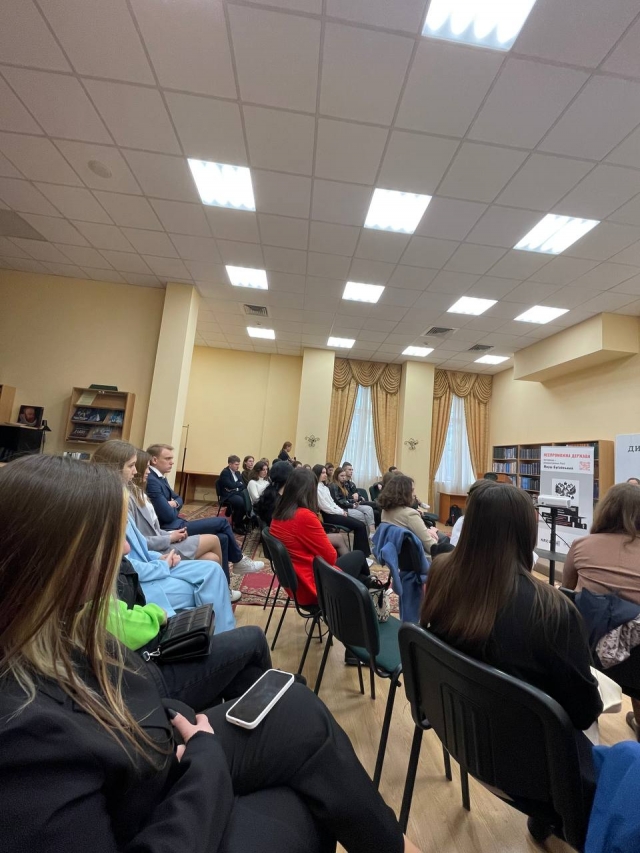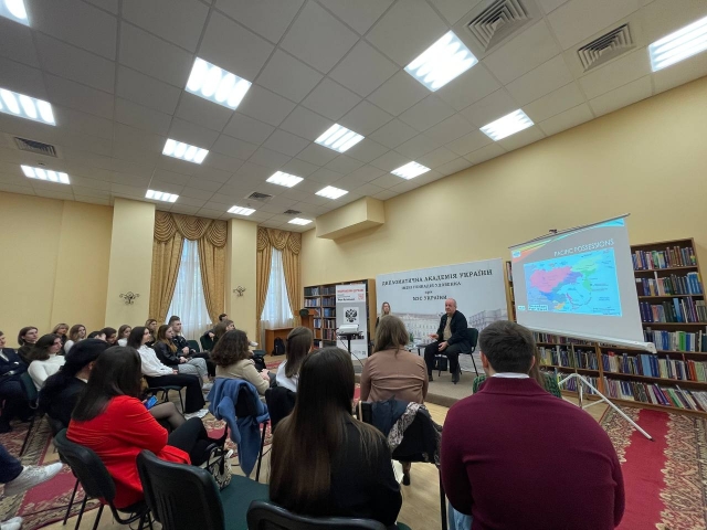Під час зустрічі експерт, цікаво розповів про причини та логіку процесу розпаду російської федерації, можливі утворення на території московії та виклики/плюси від розпаду рф. Звісно, з радістю відповів на всі питання присутніх на лекції.