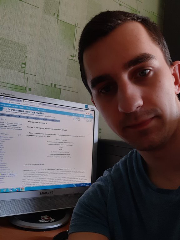 Максим Клименко – магістр першого року навчання освітньої програми «Право»: «Для мене дистанційне навчання має низку переваг перед іншими формами навчання. Так, практично не виходячи з дому чи не покидаючи свого робочого місця, можна підтримувати регулярний контакт з викладачем за допомогою телекомунікаційних технологій, у тому числі відеозв’язку, та одержувати структурований навчальний матеріал з дисципліни «Юридична техніка», який представлений в електронному вигляді. Приємно відзначити, що викладачі кафедри теорії та історії держави і права змогли у максимально швидкі терміни налагодити з нами онлайн-діалог».