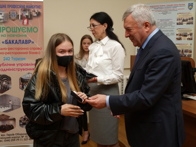 З вітальним словом до першокурсників звернувся директор інституту ННІ неперервної освіти і туризму Іван Гриценко, який наголосив на можливостях професійного розвитку, представив завідувача кафедри д.е.н., професора Інну Ванадіївну Левицьку та кураторів. Іван Сергійович побажав першокурсникам на шляху до знань максимально використати свій потенціал, здобути освітні, наукові, спортивні та творчі перемоги.