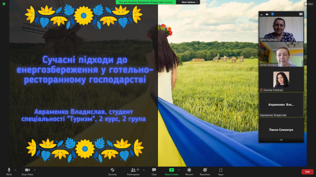 Так, 19 травня 2022 року на кафедрі готельно-ресторанної справи та туризму НУБіП України студенти захистили свої курсові роботи з дисципліни «Організація готельного господарства», які вони виконували під керівництвом д.т.н., професора Валентини Бандури, д.е.н., доцента Альони Климчук та к.е.н., доцента Ірини Кудінової. Під час захисту студенти представили свої закінчені дослідження з тем, які стосуються функціонування готелів в сучасних умовах.