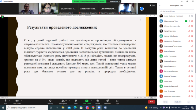 Студенти спеціальності «Туризм» вдало захистили курсові роботи з дисципліни «Організація готельного господарства»