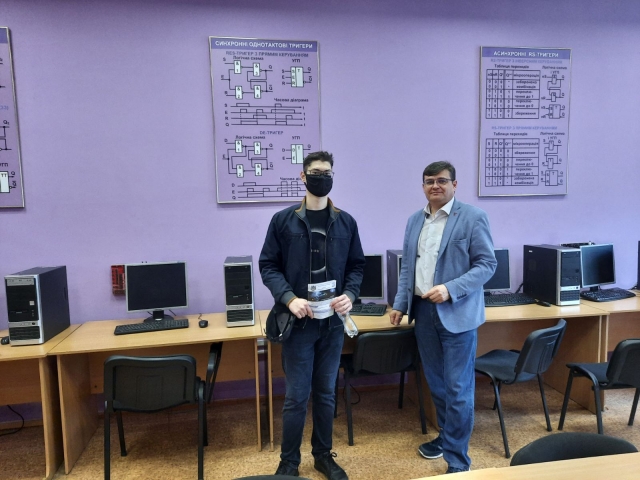 Неабиякий інтерес до навчання на ІТ спеціальності нашого факультету виявив Артем Єгорушкін, студент 2 курсу Національного університету харчових технологій за спеціальністю "Біотехнологія та біоінженерія". За його словами, він від друзів почув гарні відгуки про наш заклад, а особливо про кафедру комп'ютерних систем і мереж, яка останнім часом дуже суттєво посилила матеріально-технічну та навчально-методичну базу лабораторій.