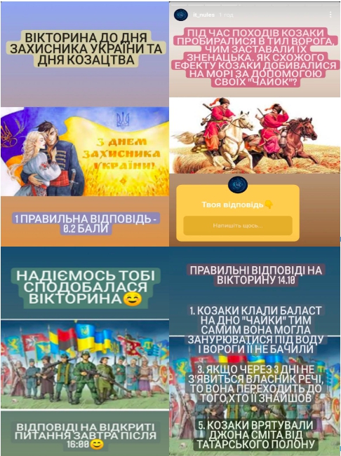 14 жовтня відбулася тематична вікторина в Instagram, присвяченя Дню захистиків та захисниць України, а також Дню козацтва. Студенти мали нагоду поринути в історію, перевірити свої знання та дізнатися цікаві факти про українських козаків.