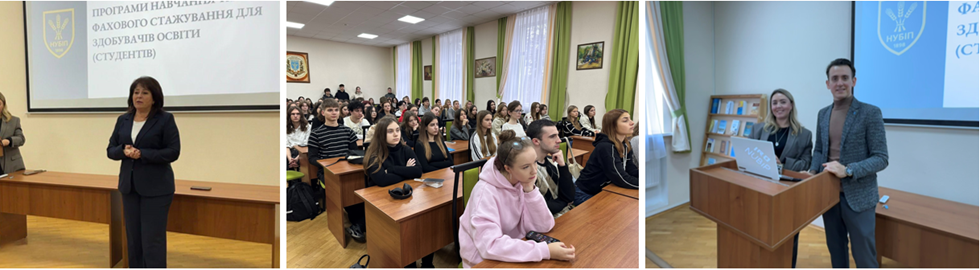 08 жовтня для студентів гуманітарно-педагогічного факультету відбулася інформаційна зустріч з представниками міжнародного відділу НУБіП України, під час якої здобувачі вищої освіти дізналися більше про можливості участі в міжнародних програмах мобільності та студентських обмінах (ERASMUS+ KA1), програмах практик, подвійних дипломів і перспективах навчання за кордоном.
