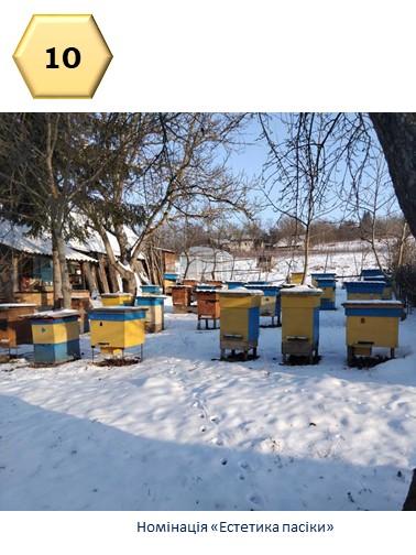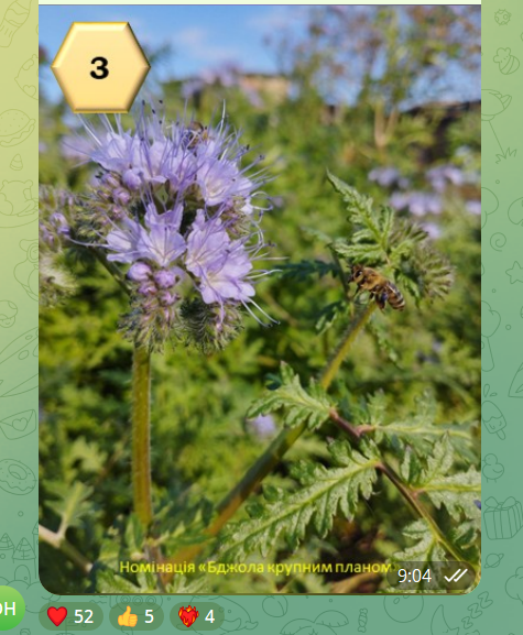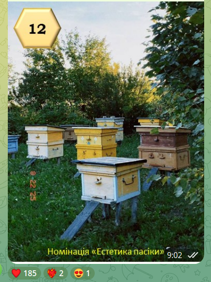 🏆 Номінація «Естетика пасіки» — Анастасія Сиволожська Переможцем у цій номінації стала студентка 2 курсу факультету землевпорядкування НУБіП України Анастасія Сиволожська. Її світлина підкорила серця глядачів художністю та гармонією, здобувши найбільшу кількість лайків серед усіх учасників конкурсу. Робота Анастасії стала справжнім втіленням краси та спокою українського бджільництва.