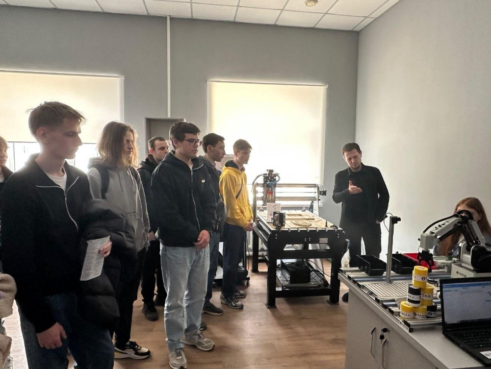 Дмитро Касаткін, завідувач кафедри комп’ютерних систем, мереж та кібербезпеки, провів детальну екскурсію лабораторіями факультету з елементами вікторини, в продовж якої кожен мав нагоду отримати подарунки з сувенірною продукцією факультету, що була надрукована в лабораторії 3-d друку та моделювання.