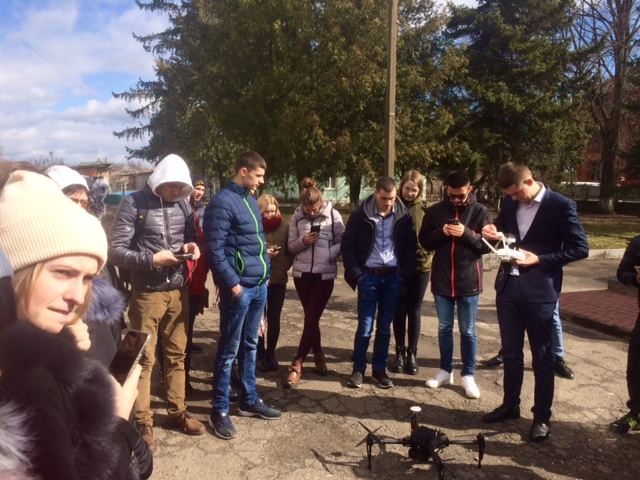 Тож цього разу на запрошення директора Володимир-Волинського агротехнічного коледжу Олександра Коновалюка та його заступника Наталії Матусевич команда факультету землевпорядкування здійснила висадку, зліт і посадку за 10 км від західного кордону України і провела показове заняття для студентів 3-го і 4-го року навчання землевпорядного відділення. До аудиторії приєдналися представники місцевого телебачення та газети, а також викладачі коледжу.