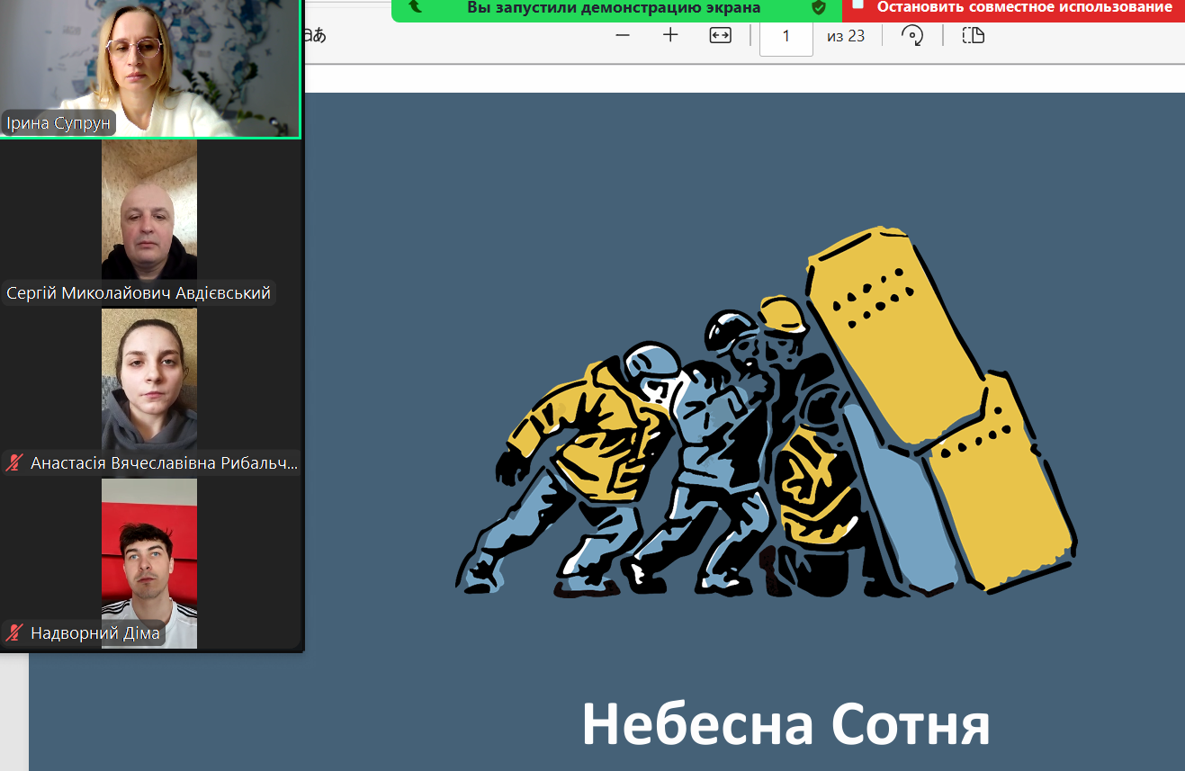 Під час зустрічі ми разом пригадали хронологію тих днів, переглянули інформаційні матеріали та обговорили значення подвигу Небесної Сотні для сьогодення. Особливо цінними були особисті спогади студентів. У 2014 році більшості з них було лише 9–10 років, проте це вже був свідомий вік, коли події глибоко закарбовуються в пам’яті. Студенти згадували, де вони перебували в ті дні, як разом з батьками стежили за новинами по українських телеканалах, як реагували їхні родини та як формувалося їхнє перше усвідомлення громадянської позиції.