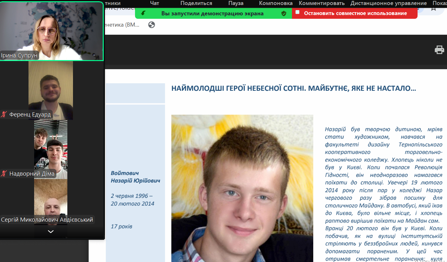 20 лютого відбулася тематична організаційна он-лайн зустріч зі студентами другого курсу факультету тваринництва та водних біоресурсів (скороченого терміну навчання), присвячена Дню Героїв Небесної Сотні.