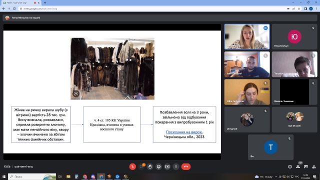 Кожне з розглянутих питань лекторка супроводила детальними прикладами, що взяті з реальних вироків суду. Завдяки цьому студенти мали можливість не лише отримати теоретичні знання з теми, а і познайомитись з тим, як суди застосовують норми права на практиці.